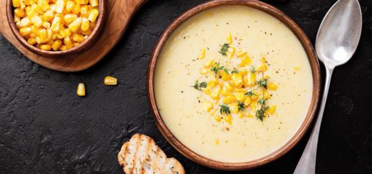 Die Maiscremesuppe lässt sich mit oder ohne Anrösten der Zutaten zubereiten.